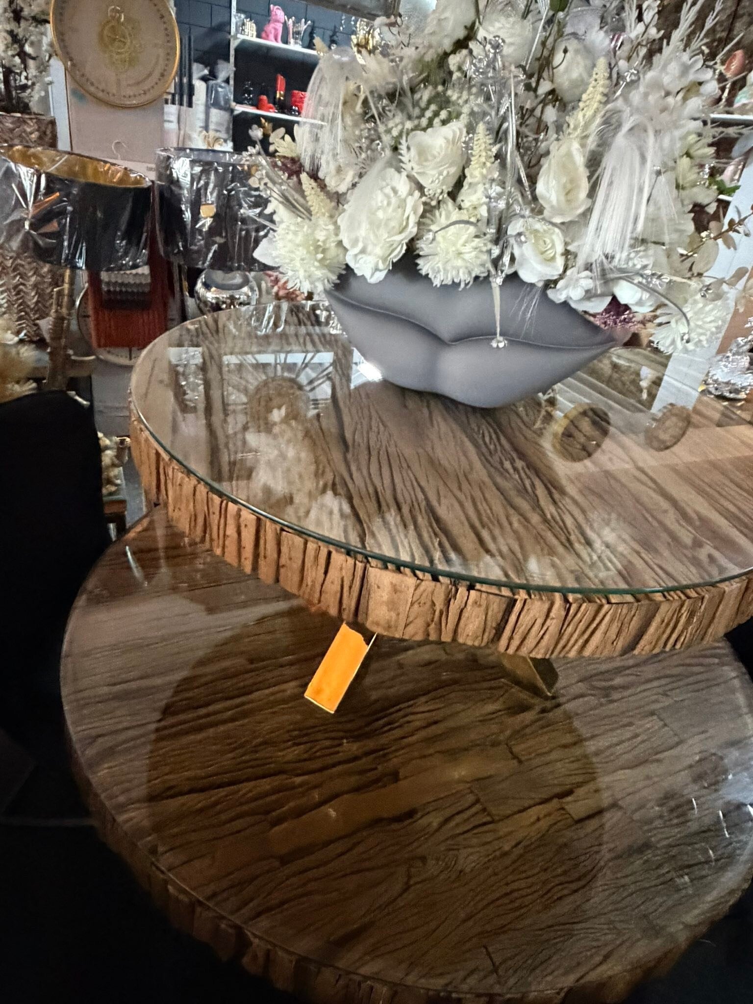 en salon tafel 1m doorsnee Beide incl glasplaat actie set €999,-