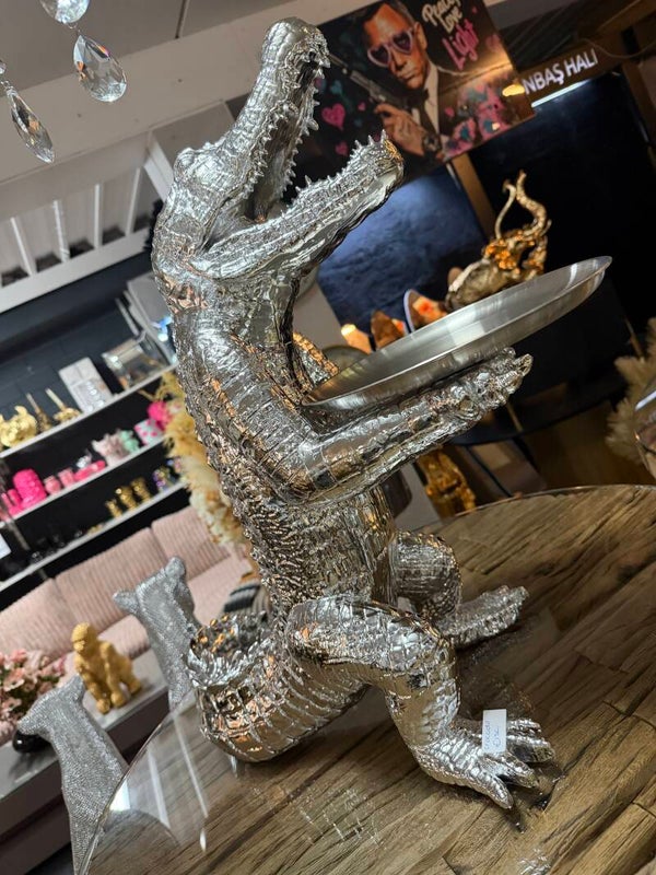 Deze mooie krokodil met dienblad